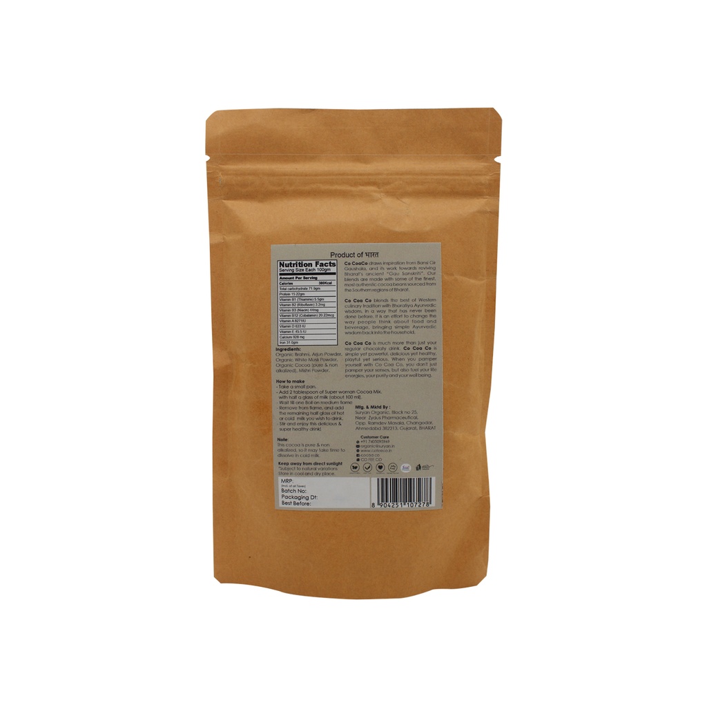 Co Coa Co is Dakshin Bharatiya, and also Ayurvedic. Our blends are made with some of the finest, most authentic cocoa beans sourced from the Southern regions of Bharat.Co Coa Co Blends are artisan, infused with herbs consistent with Ayurvedic principles and mixed in perfect proportions to give you a refreshing delectable taste.