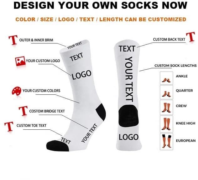 Description: CUSTOMISED SOCKS - PERSONALISED FOR YOUR BRAND Create your own unique socks with our custom-made designs! We craft high-quality socks tailored to your specifications, incorporating your brand name, logo, and designs with precision. Whether for corporate gifting, promotions, team uniforms, or retail, our socks offer premium comfort, durability, and style. Made with top-quality materials, they ensure a perfect fit and long-lasting wear. Stand out with personalized socks that reflect your brand identity. Minimum order quantities apply. Get in touch to bring your custom sock designs to life!