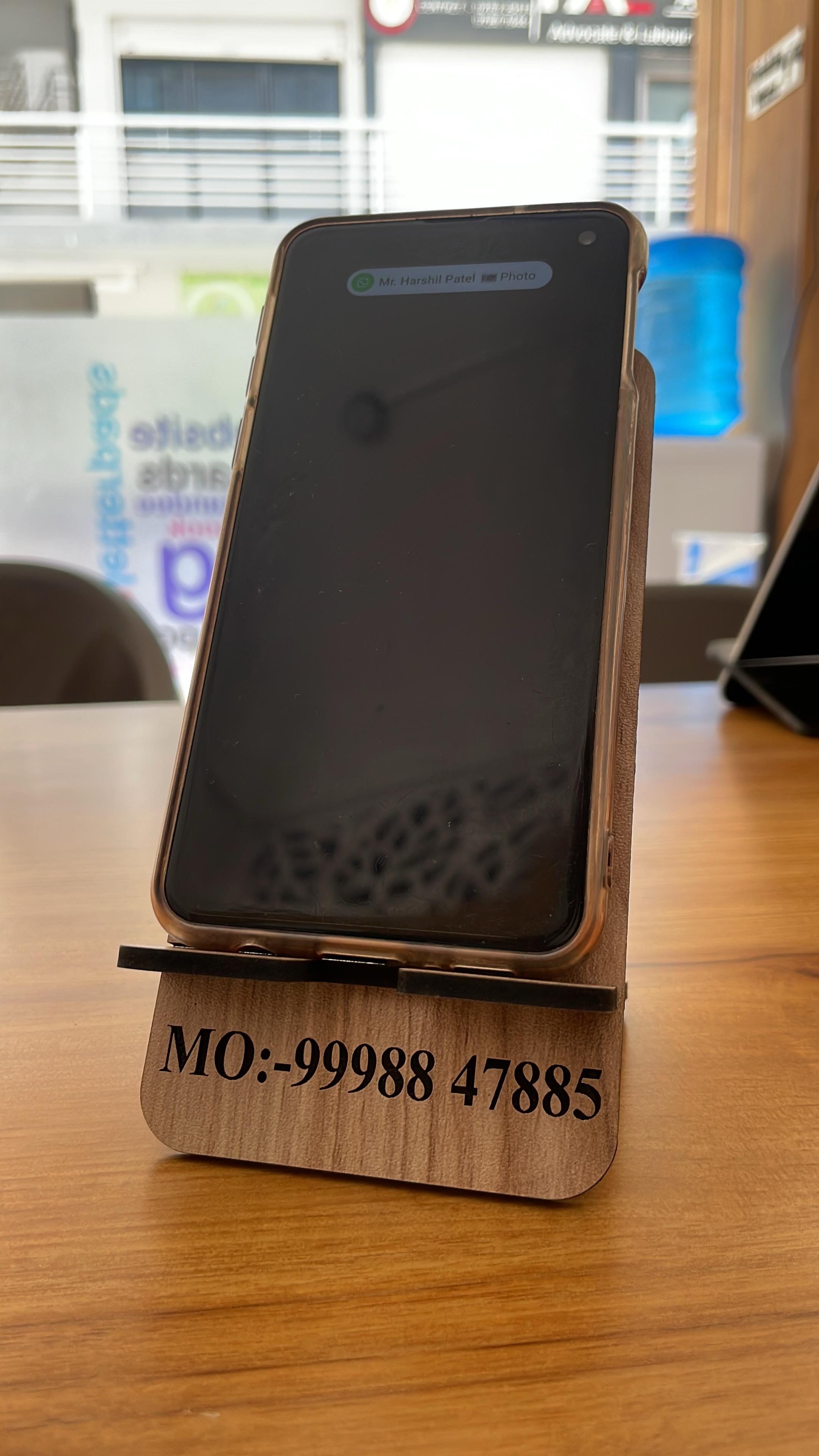 Description: Wooden Leaser Cut Mobile Stand Customizable for Company Branding and Logo Engraving. Bulk & Loose Qty orders Taking Ai Designs Mo. 9998847885