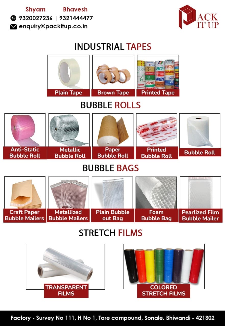 Product Name:- industrial tapes, bubble roll, transparent films, bubble bags etc.