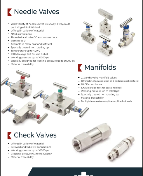 Product Name:- Instrumentation Fittings, Valves & Accessories