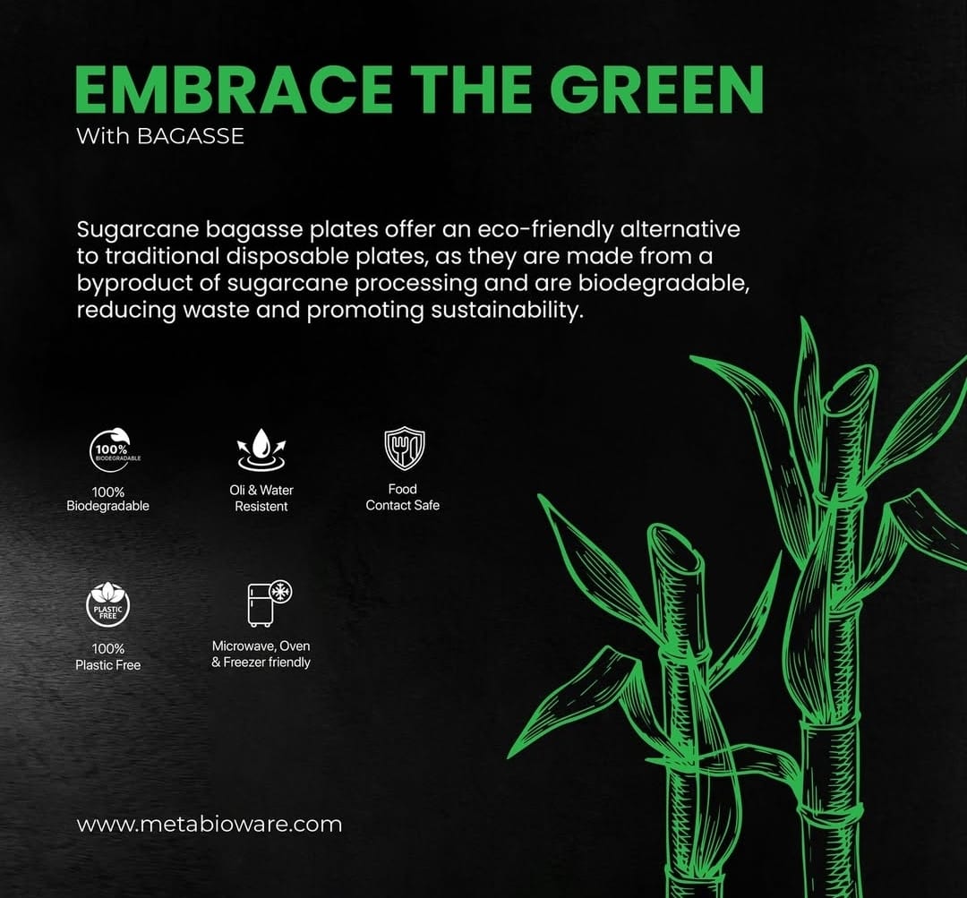 Description: A biodegradable tableware manufacturer produces disposable plates, cups, bowls, and cutlery from natural, plant-based materials like sugarcane bagasse, bamboo, cornstarch, and areca leaves, which naturally decompose after use instead of persisting as plastic waste.