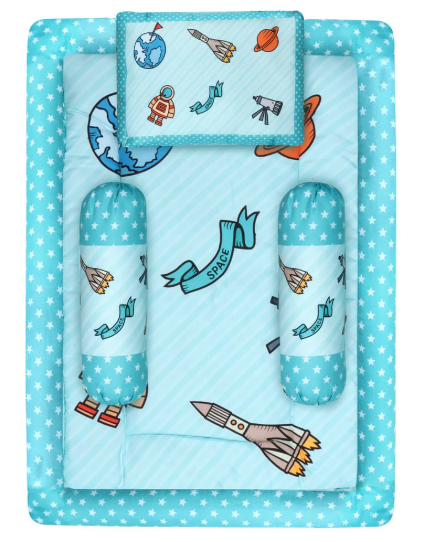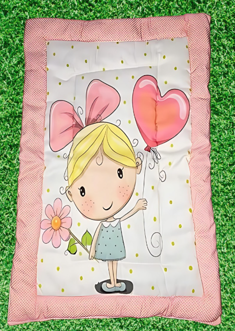 Description: https://www.indiamart.com/whopssy-international/A baby godadi is a type of soft, cotton-filled bed designed for newborns, often used for sleeping and playtime. It's typically made with a breathable cotton material to keep the baby comfortable and cool.