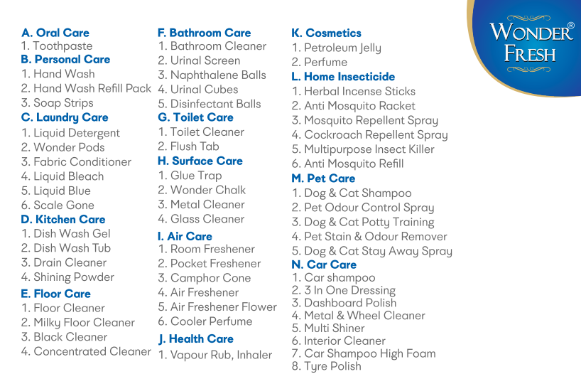 Description: Home hygiene and personal care encompass practices that promote cleanliness and health in both the home environment and for individuals. Home hygiene focuses on preventing the spread of disease through practices like handwashing, cleaning surfaces, and proper waste disposal. Personal hygiene involves maintaining cleanliness of the body and grooming habits to prevent illness and promote well-being. please visit our company website :- www.wonderfresh.in
