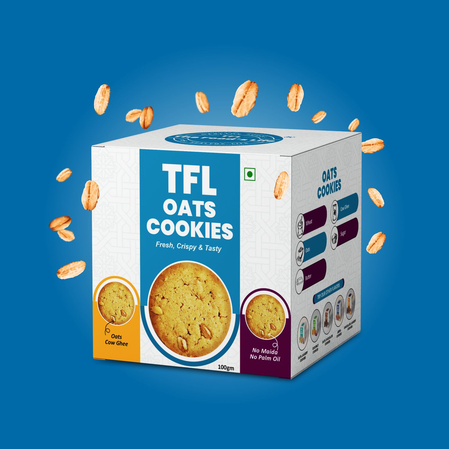 Description: Indulge in the wholesome goodness of our Oats Cookies, crafted with nutritious oats and pure ghee! At The Food's Life, we bring you a healthier snacking option that's free from maida and palm oil. Our oats cookies offer a delicious, guilt-free treat that balances taste and nutrition perfectly.