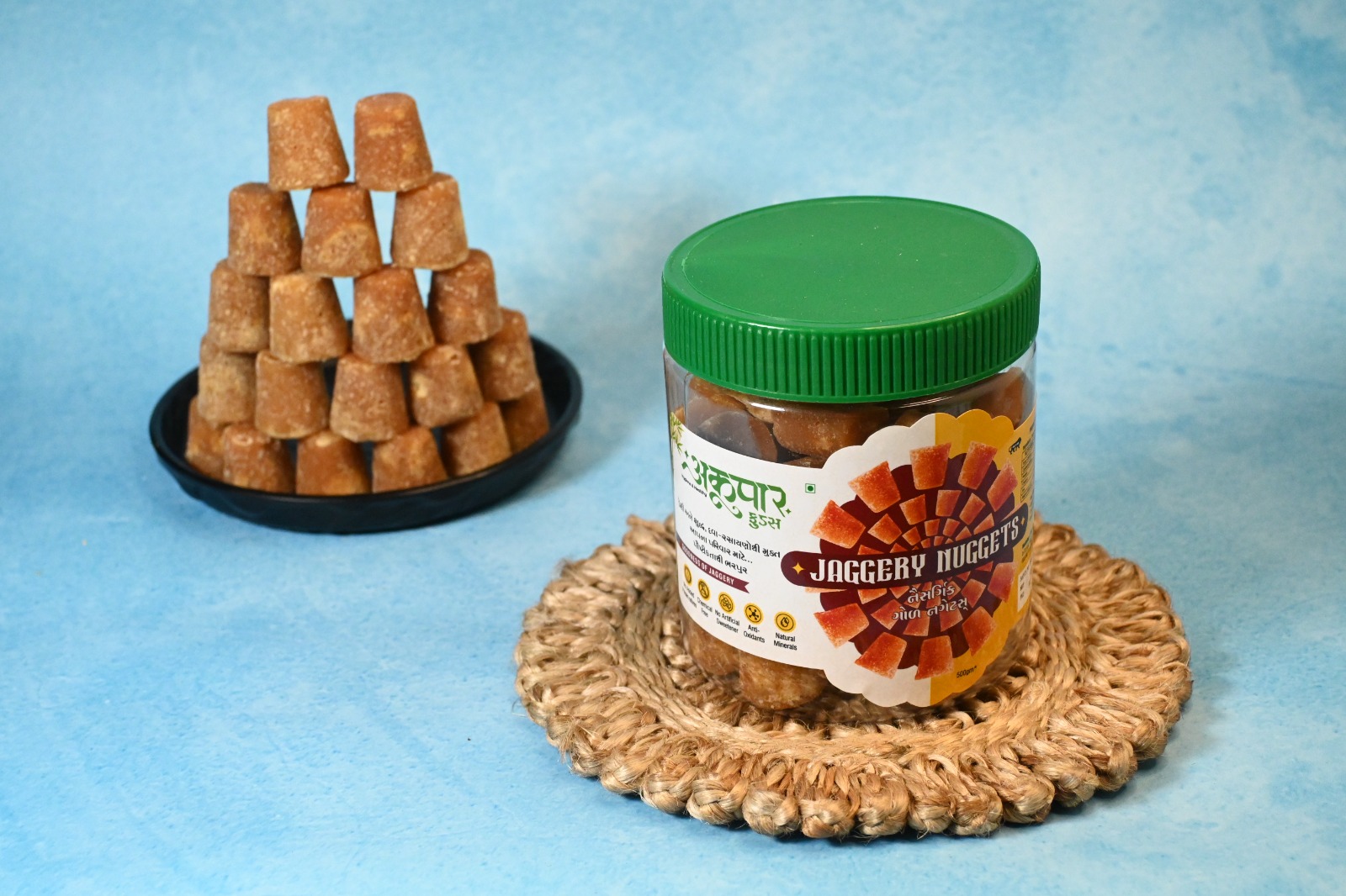 Description: Organic jaggery is an unrefined, chemical-free sweetener made from organic sugarcane juice, rich in minerals and with a caramel-like flavor. Organic honey is a natural sweetener from bees that fed on organic, pesticide-free plants, packed with antioxidants, vitamins, and minerals. Both are seen as healthier alternatives to refined sugar, used to sweeten beverages, baked goods, and desserts, and offer various health benefits.