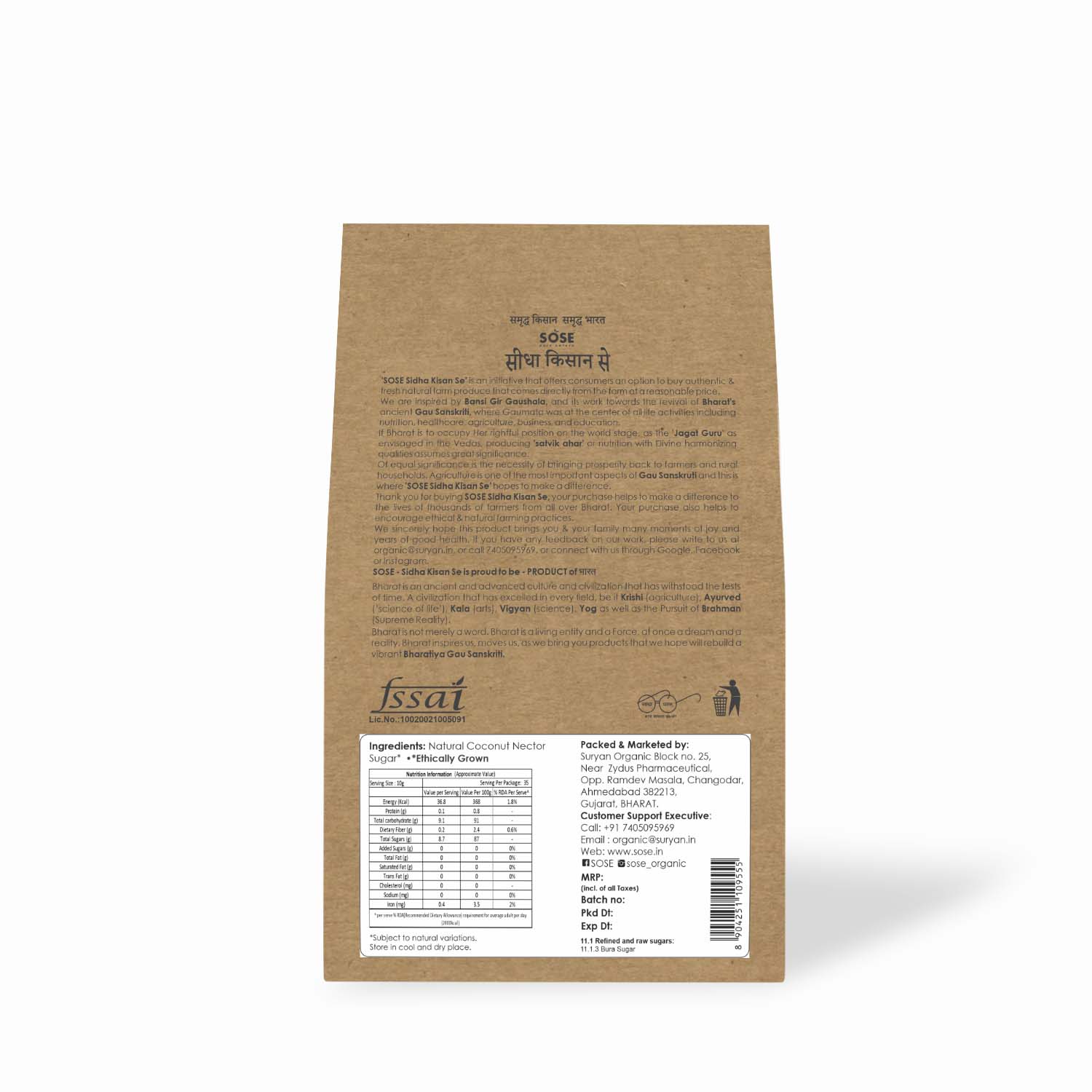 Description: Sidha Kisan Se Coconut Nectar Sugar is unrefined, so absolutely no chemicals are used in its ethical processing and thus its natural goodness have not been stripped off. Sidha Kisan Se Coconut Nectar Sugar retains quite a bit of the nutrients found in the coconut palm. it contains minerals iron, zinc, calcium, and potassium, as well as phytonutrients such as polyphenols and antioxidants