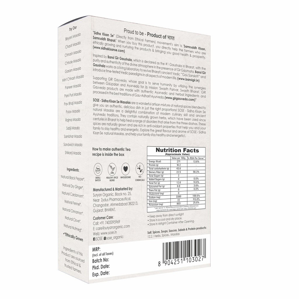 Product Name:- Sidha Kisan Se Natural Tea Masala 100gm