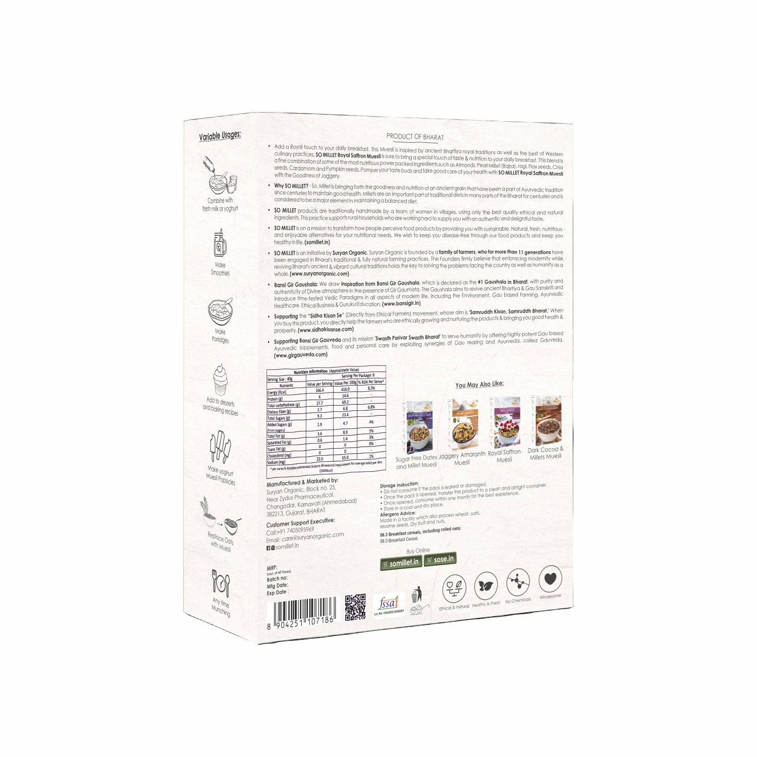 Product Name:- So Millet Royal Saffron Muesli With Goodness Of Jaggery 250gm