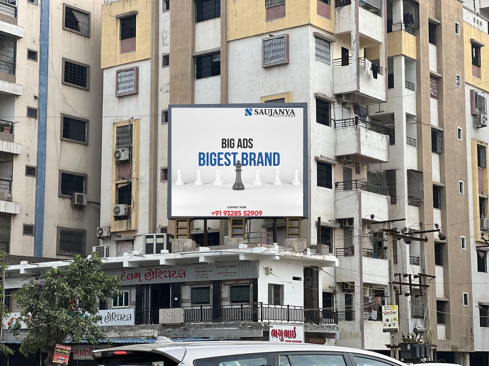 Description: Hoarding advertising, also known as billboard advertising, utilizes large, prominent structures in high-traffic areas to display advertisements. These structures, often made of iron or steel, are strategically placed along busy roads, highways, and in commercial zones, ensuring high visibility and maximum reach to a broad audience. Hoardings can be static, featuring printed graphics, or digital, allowing for dynamic and interactive content.