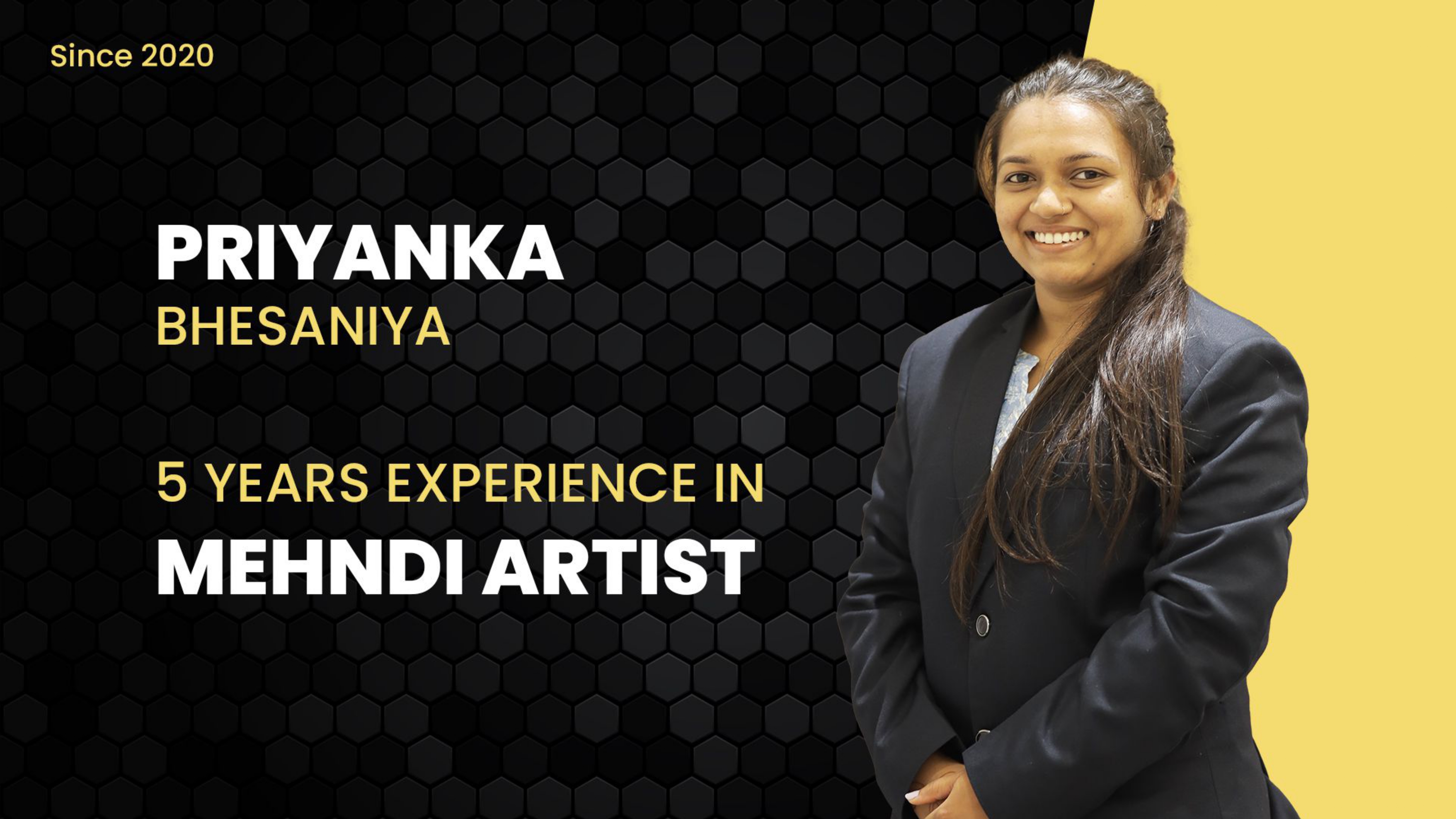 Description: Pankti Bhesaniya, who operates under the name Pankti's Mhnedi, is a mehendi artist based in Surat, India. She specializes in creating intricate and beautiful mehendi designs, particularly for bridal events and other occasions. Her work is known for capturing the beauty of fresh mehendi designs. She also offers mehendi classes and is a Heena educator.