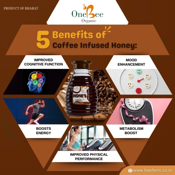 Description: Coffee Honey Description: This energizing honey blends with coffee, making it a natural stimulant. Benefits: Increases energy levels. Provides antioxidants. Improves mental alertness. Enhances metabolism. Works as a natural pre-workout booster. Ingredients: Raw honey, coffee extract.