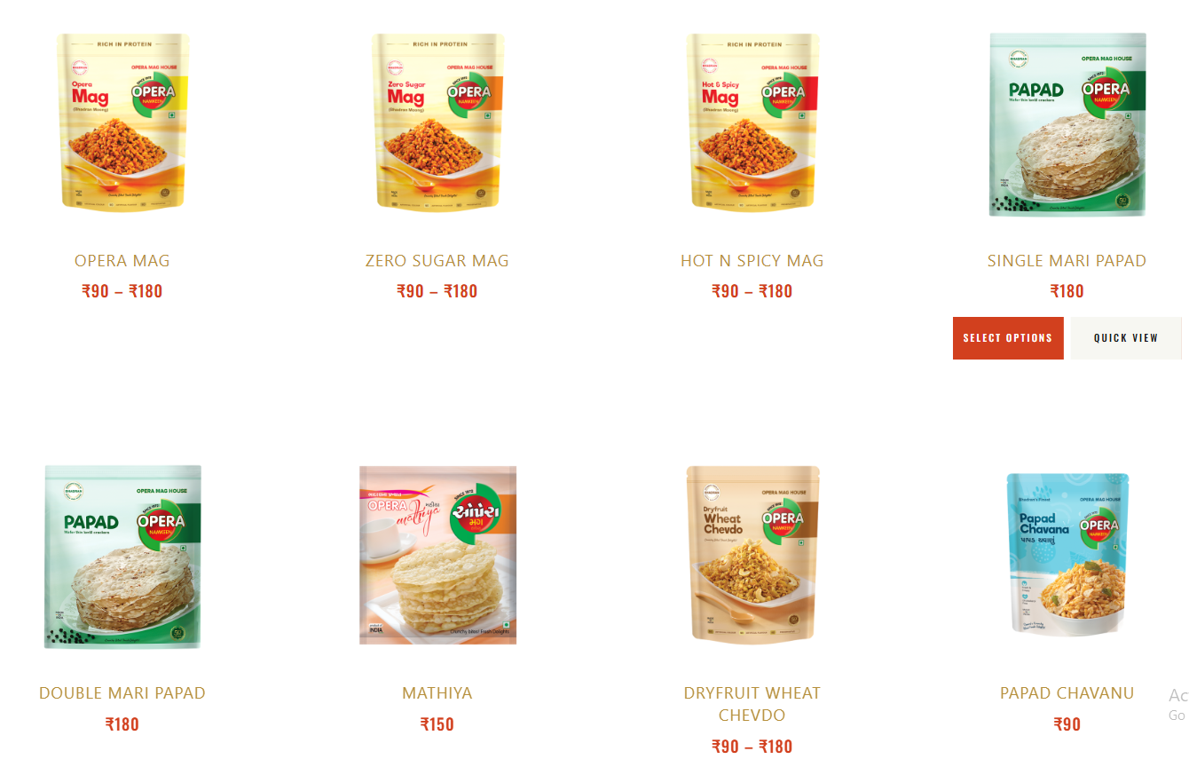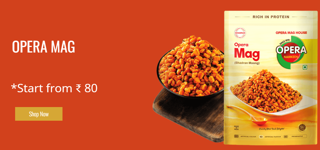 Description: Opera Mag House Founded in 1972 in the quaint town of Bhadran, Gujarat, Opera Mag House began as a humble shop specializing in a unique moong-based savory known locally as "Bhadran na Mag." The unwavering popularity of this signature dish prompted the establishment of the company, maintaining its original flavors and quality. Over the years, Opera Mag House has evolved to craft an array of delectable snacks, including Vatana, Wheat Chevdo, Ratlami Sev, Dalmooth, Chana Dal, Lasan Chevdo, and more. Our commitment to preserving the authenticity and excellence of our signature products remains unchanged. Please visit our website to learn more about our products. https://www.operamaghouse.com/