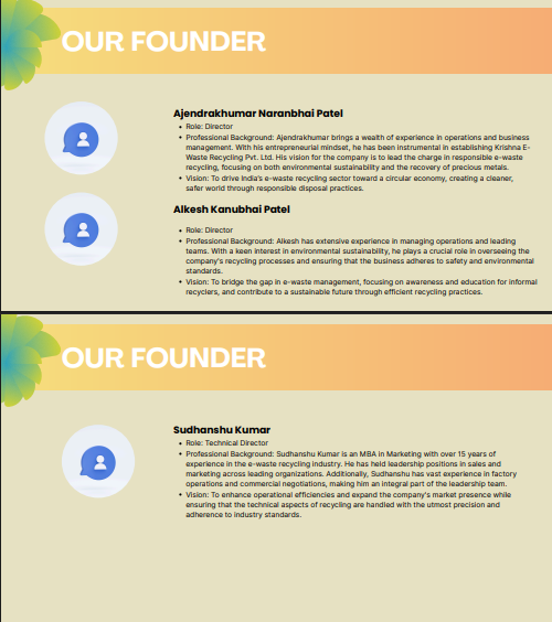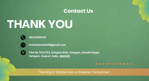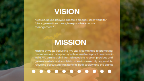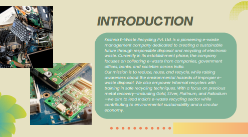 Description: Krishna E-Waste Recycling Pvt. Ltd. is a pioneering e-waste management company dedicated to creating a sustainable future through responsible disposal and recycling of electronic waste.focuses on collecting e-waste from companies, government offices, banks, and societies across India.