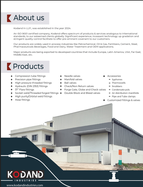 Description: An ISO 9001 certified company, Kodand offers spectrum of products & services analogous to Iriternational standards, to our esteemed standards, to our esteemed clients globally. Significant experience, incessant technology up gradation anp stringent quality control facilitate to offer pre-eminent covenant to our customers. please visit our company website :- https://kodandindustries.com/