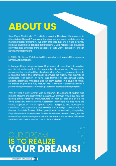 Description: Established in 1997, our company is dedicated to producing high-quality, eco-friendly notebooks and paper stationeries that combine functionality, aesthetics, and sustainability. With a focus on cutting-edge design, superior craftsmanship, and environmental responsibility. Gopi Notebook is committed to becoming a leader in the National and International notebook market. pls. visit our company website :- www.gopinotebook.com