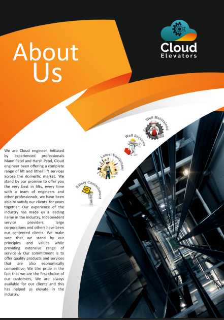 Description: We are Cloud engineer. Initiated by experienced professionals Mann Patel and Harsh Patel, Cloud engineer been offering a complete range of lift and Other lift services across the domestic market. We stand by our promise to offer you the very best in lifts, every time with a team of engineers and other professionals, we have been able to satisfy our clients for years together. Our experience of the industry has made us a leading name in the industry. Independent service providers, large corporations and others have been our contented clients.